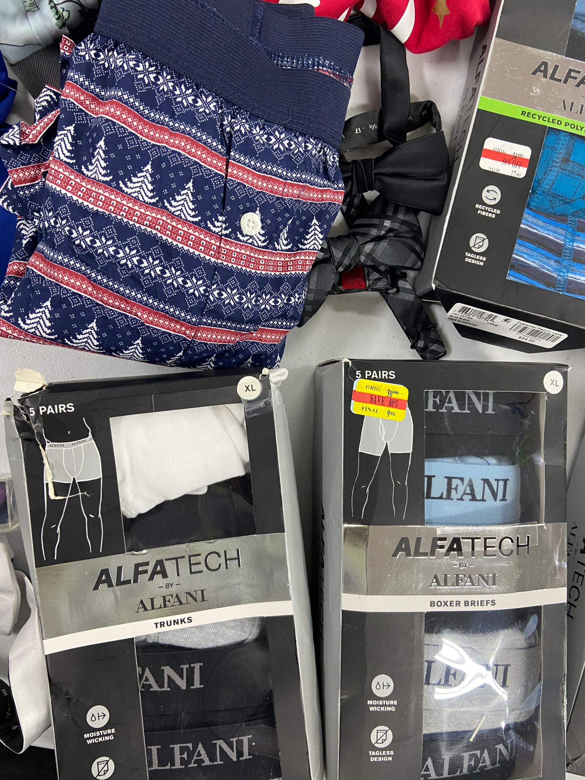 • Men’s Boxers and Briefs: Various styles such as classic boxers, boxer briefs, and briefs in multiple sizes and colors.