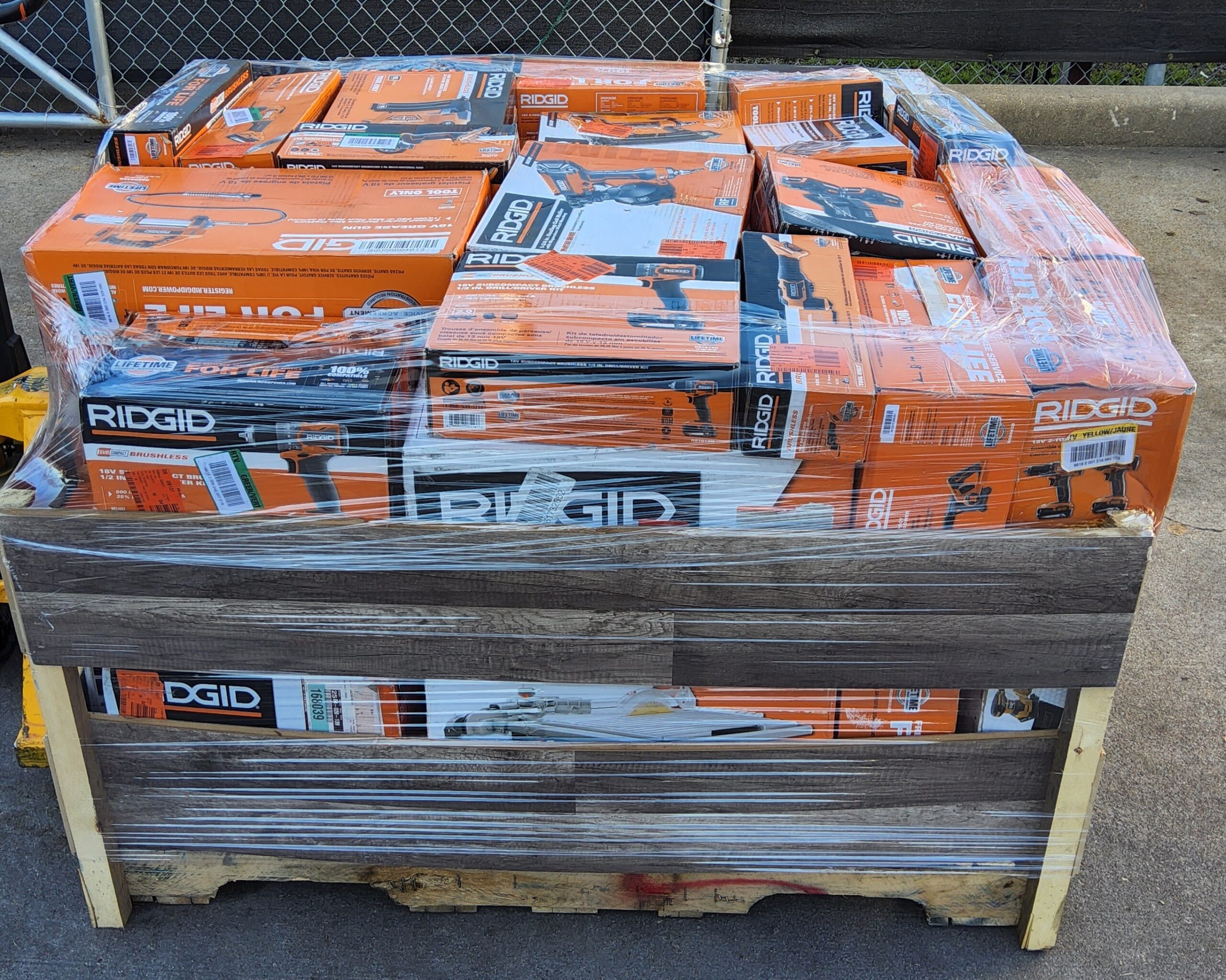 Ridgid, a leading manufacturer in the tool industry, is best known for professional-grade power and hand tools. Pallets frequently include various tools such as: